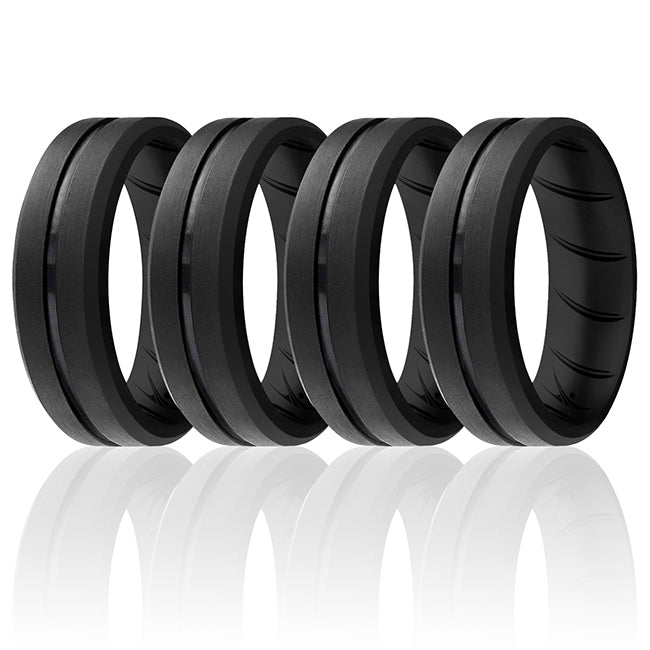 ROQ, Silicone Wedding BR Middle Line Ring Set - Basic-Black by ROQ for Men - 4 x 12 mm Ring, Ring, Men, Jewelery, Silicone Wedding BR Middle Line Ring Set - Basic-Black, 4 x 12, mm